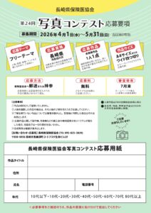 長崎県内在住の方を対象に下記の要領で第24回写真コンテストを開催します。テーマは特に決めていませんので、お気に入りの作品をふるってご応募ください。